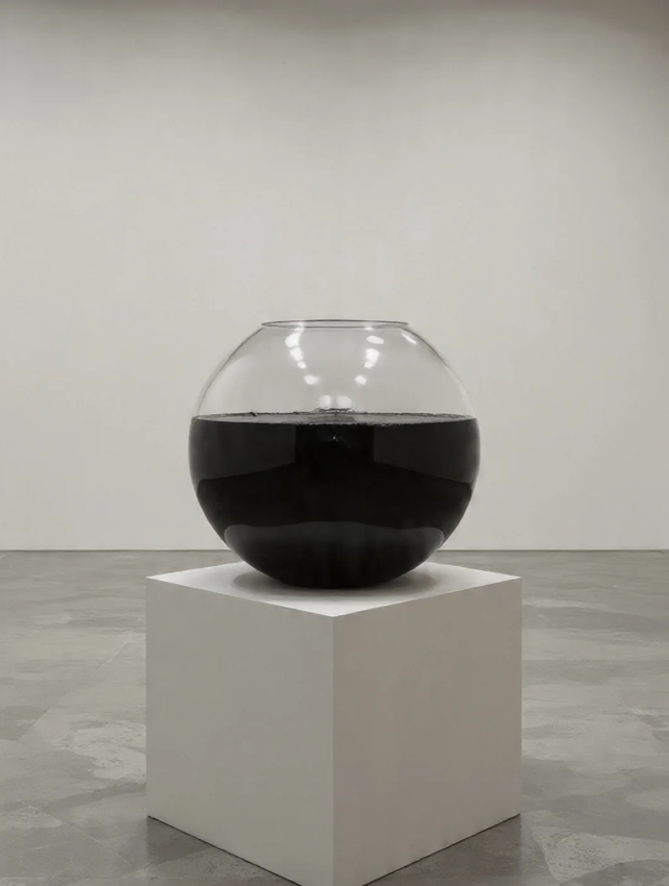 «Esa pecera llena de tinta china negra es un universo de infinitas posibilidades. El plural de una palabra indica el infinito, pero ‘un millón de peces’ tiene límite. Prefiero la potencia de lo que no se ve a la limitación de lo representado.»